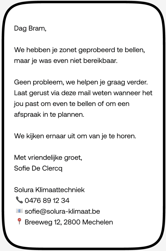 Binnen 5 minuten na gemist gesprek opvolging per mail